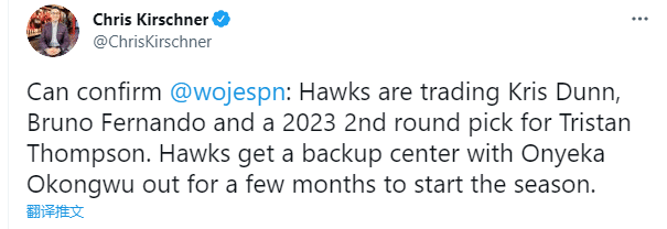 24直播网讯 北京时间7月31日,NBA又一笔交易达成,据ESPN名记沃纳罗斯基报道,凯尔特人把特里斯坦-汤普森交易到老鹰,得到克里斯-邓恩、布鲁诺-费尔南多和一个2023年次轮选秀权;绿军1换3送走TT,这是他们休赛期第二笔交易,赛季结束是绿军把沃克交易到雷霆。