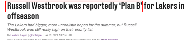 24直播网讯 北京时间7月30日,湖人和奇才达成一笔关于交易威少的协议。湖人送出库兹马、波普、哈雷尔和今年的22号首轮签,从奇才得到威少、2024年的次轮签和2028年的次轮签。随后,Bleacher Report记者Eric Pincus曝光了交易的内幕。威少确实在湖人引援名单上靠前的位置,但他其实只是球队的B计划。