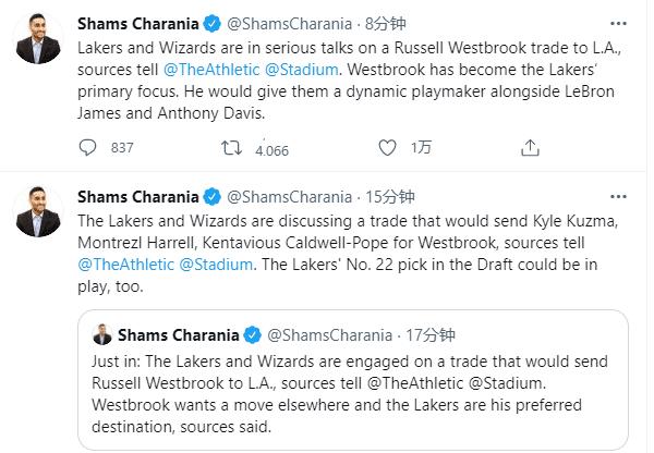据ShamsCharania的报道,湖人和奇才正在认真讨论一笔交易,这笔交易为湖人用库兹马、哈雷尔以及波普为筹码,换取奇才的拉塞尔-威斯布鲁克。但因为目前还有一些细节没敲定,所以湖人同时与国王商讨希尔德交易,筹码是22号签+库兹马+波普,基本是双保险,就看那笔交易能成型了!