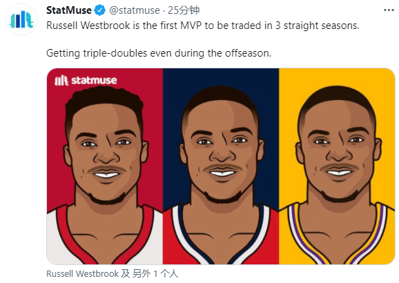 威少又被交易了,他成为NBA史上第一位被连续三年交易的MVP球员;2019年,威少申请交易并被雷霆交易到火箭,和哈登仅在休斯敦合作一年便解体;2020年,威少被火箭交易到奇才,如今威少被交易到湖人,威少如愿回到洛杉矶打球。