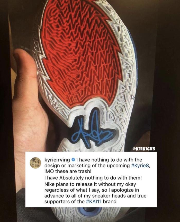 欧文评论即将发售的欧文8代:即将发售的欧文8代的设计和营销都与我无关,在我看来这些都是垃圾!我和它们没有任何关系!无论我说什么,耐克都计划发售它们,所以我提前向我的所有球迷和支持者道歉。