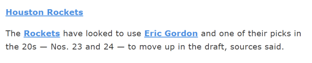 另据查拉尼亚报道,火箭仍未放弃向上交易选秀签的尝试。他们希望用戈登和一个首轮末的签(23号或者24号)打包交易,争取获得一个顺位更高的选秀签。