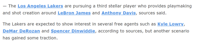 24直播网讯 北京时间7月26日,名记查拉尼亚和沃纳罗斯基都报道了湖人的最新运作。这支在本赛季首轮就被淘汰的劲旅,正试图在休赛期补强阵容,力争在2021-22赛季重夺总冠军。
