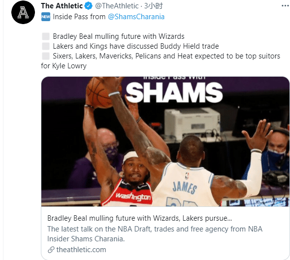 除了争抢洛瑞,湖人和国王已经讨论过希尔德交易,库兹马是交易筹码之一;目前库兹马是湖人在交易市场上的谈判筹码之一,湖人几乎向联盟中的所有球队都报价了库兹马和波普;现在有多支球队对库兹马很有兴趣。