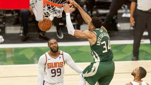 24直播网讯 北京时间7月12日,NBA总决赛G3,回到主场的密尔沃基雄鹿找回气势,多次打出得分潮并防死对手,最终以120-100大胜太阳,拿到总决赛的首场胜利。