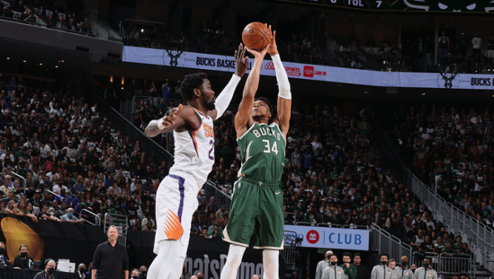 24直播网讯 今天NBA总决赛G3来到密尔沃基,雄鹿在主场击败太阳,系列赛大比分来到1-2雄鹿依旧处于落后。这场比赛的最终的是在第三节,上半场双方的分差都在可追范围之内,到了第三节结束的时候,雄鹿依靠着一波16-0的攻击波,强势的将优势拉大到22分。末节胜负悬念提前消失,雄鹿扳回一城,避免被太阳横扫的同时也看到了夺冠希望,接下来的G4依旧会在雄鹿主场进行。