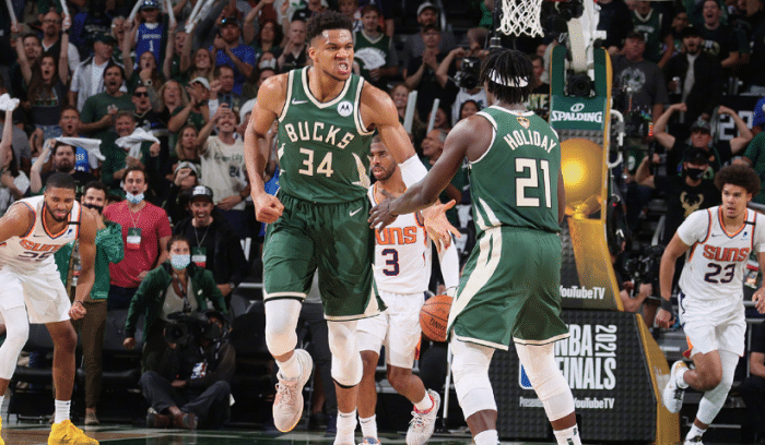 24直播网讯 今天NBA总决赛第三场结束了争夺,雄鹿依靠着第三节轰出的一波流,以120-100击败太阳,系列赛大比分来到1-2雄鹿虽然依旧是落后的一方,但看到了逆转的希望,同时拒绝被对手横扫,字母哥轰下41分13板6助,总决赛连续两场40+10比肩奥尼尔和詹姆斯。接下来布帅和字母哥的目标毫无疑问就是力争G4捍卫主场,然后扳平总分的同时将系列赛拖入到天王山之战。太阳这边遗憾输球,但他们2-1领先同时还有主场优势,接下来的比赛他们需要好好调整了。