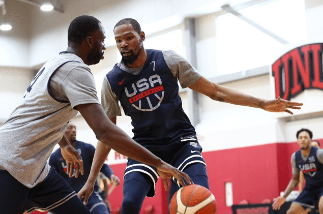 24直播网讯 那边的NBA总决赛正在如火如荼地举行,这边的美国男篮也在积极地备战奥运。美国梦之队在世锦赛败北之后,势必会在东京奥运会上找回来。于是,集结了杜兰特、利拉德、塔图姆、追梦格林的美国梦之队便选择了卷土重来。以往在NBA竞争的你死我活的老对手,在这期间也通过相处,变成了彼此熟悉的好朋友。就像当年梦一队的乔丹、伯德、魔术师一样。这次美国队集训杜兰特、格林都有参加,那他们的关系可以通过奥运会变得缓和吗?