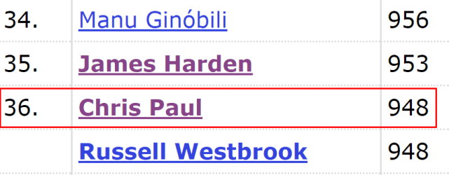 第三,保罗的季后赛总得分已达到2590分,位列历史第39位。他有望在G3的比赛中超越排名第38位的凯文-加内特(2601分)。下一个追赶目标是凯尔特人名宿比尔-拉塞尔(2673分)。本赛季的季后赛至今,保罗场均能得到19.3分。