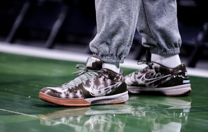 布克穿了一双相当罕见的“不败”(Undefeated)联名科比4代球鞋,用这种方式向偶像科比致敬,对此布克调侃“鞋王”塔克:我总算看到一双塔克没有的球鞋了(塔克曾自曝拥有4000多双球鞋)。