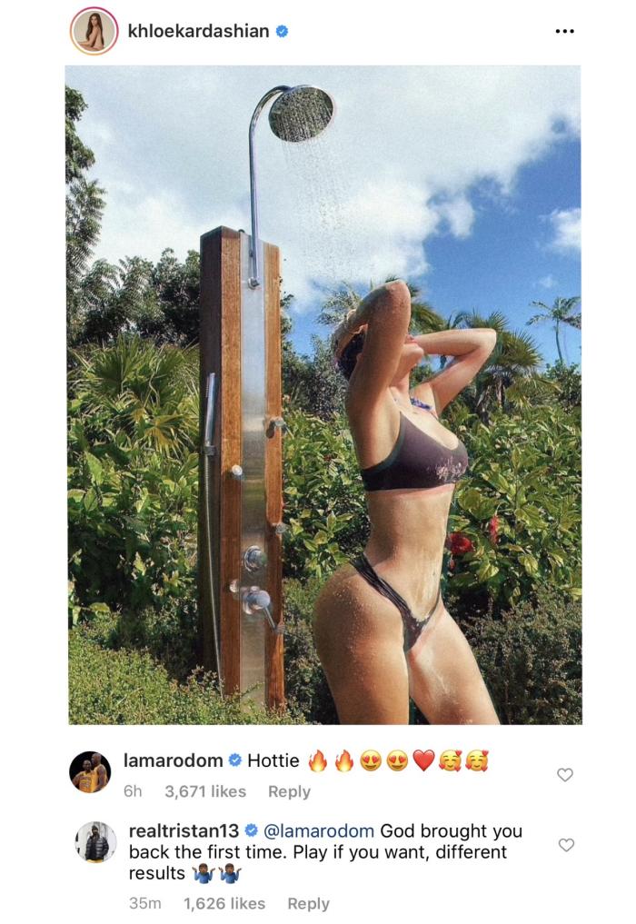 24直播网讯 北京时间7月10日,科勒-卡戴珊更新社交媒体,晒出一张身穿比基尼的性感照,湖人旧将奥多姆在评论区留言:辣妹,好性感(Hottie)一系列色色的表情包;对此TT特里斯坦-汤普森回应:上帝拯救了你一次,如果你再为所欲为,这次的结果会不同的。