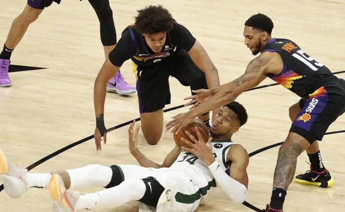 24直播网讯 北京时间7月9日,刚刚结束的一场NBA总决赛较量,太阳118-108战胜雄鹿,系列赛大比分来到太阳2-0雄鹿。本场比赛太阳这边保罗得到23分4篮板8助攻的全面数据,依旧是太阳赢球的重要功臣。