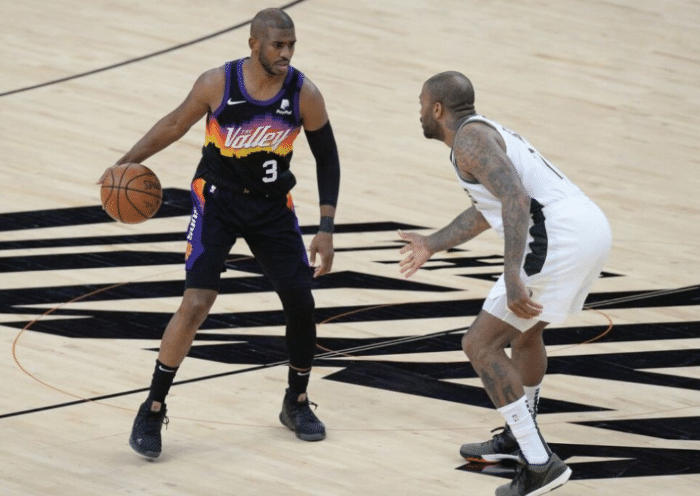 这场比赛可以说雄鹿做出了调整,他们不再用塔克去主防保罗,而是用霍勒迪,他送出了大帽并给了保罗很多的身体对抗,另外在防挡拆时对保罗和布克的限制还不错(尤其是上半场)但是在进攻端他们无法与太阳进行匹配,尽管字母哥这一场大杀四方轰下42分12板4助3帽,第三节轰下20分!
