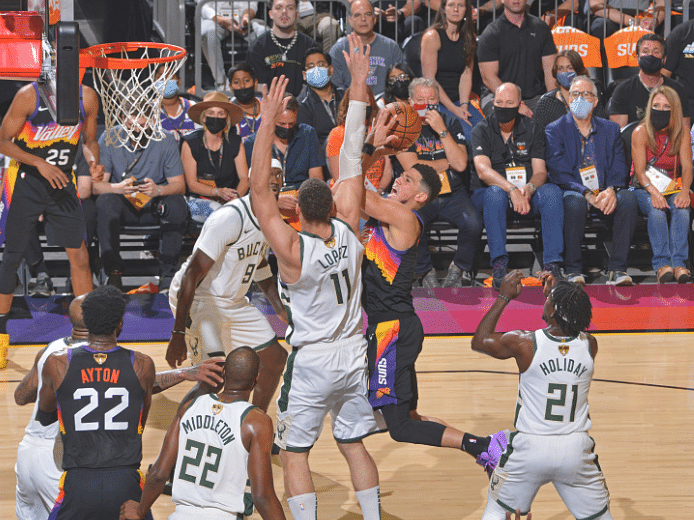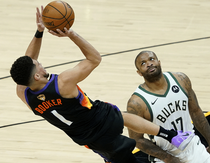 24直播网讯作为本赛季的黑马球队,在众人难以相信的过程中,太阳队也是走到总决赛。在此前G1与雄鹿队的对决中,球队最终也是将对手击败,拿下开门红。对于本场比赛球队的获胜,对于球队士气是有很大的帮助。毕竟两支球队已经走到最后一轮系列赛,谁能够率先赢下四场比赛,他们就能够笑着将总冠军奖杯拿下。从双方首场比赛的对决中,太阳队核心布克的发挥是受到许多球迷的关注。从外媒赛后的统计来看,本场比赛布克全场是贡献27+2+6的数据。从数据上来看,其实还算是及格,毕竟在过去的时间里,布克的进攻能力可是受到许多球迷的认可,本场拿下27分,算是一般水准。