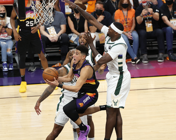 但就在这样一个进攻不错的状况之下,本场比赛布克在防守端的发挥以及表现,却是让许多球迷感到意外。从数据上来看,本场比赛在布克的防守下,雄鹿球员合计11投仅仅1中。其中布克在与霍勒迪以及米德尔顿的对位之下,两人一共拥有9次机会,但都没有命中。