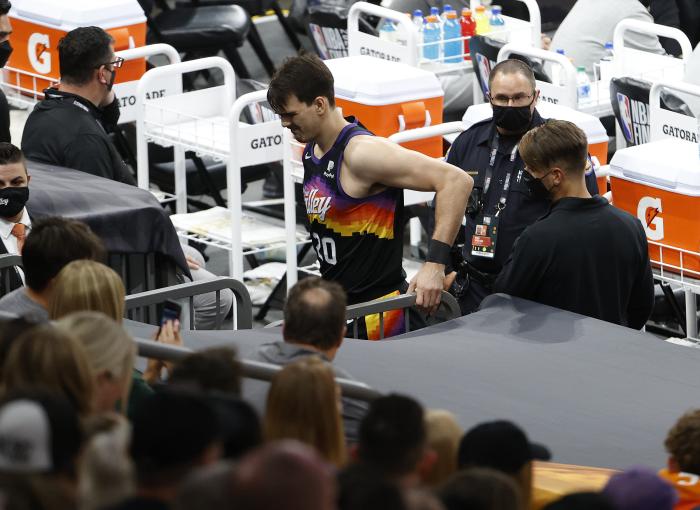 太阳和雄鹿总决赛第一场,萨里奇首节在一次突破中,落地时扭到了膝盖,他随后一瘸一拐,被搀扶着返回更衣室,因伤提前退出本场比赛;太阳悍将在无碰撞的情况下受伤离场,最终伤情确诊为右膝前交叉韧带撕裂,遭遇如此伤情,意味着他将赛季报销。