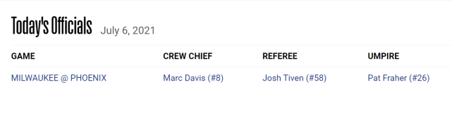 24直播网讯 北京时间7月6日,NBA官方公布了总决赛G1的裁判名单,他们分别是8号裁判马克-戴维斯(主裁)、58号裁判约什-吉文和26号裁判帕特-弗拉赫,候补裁判是49号裁判汤姆-华盛顿。