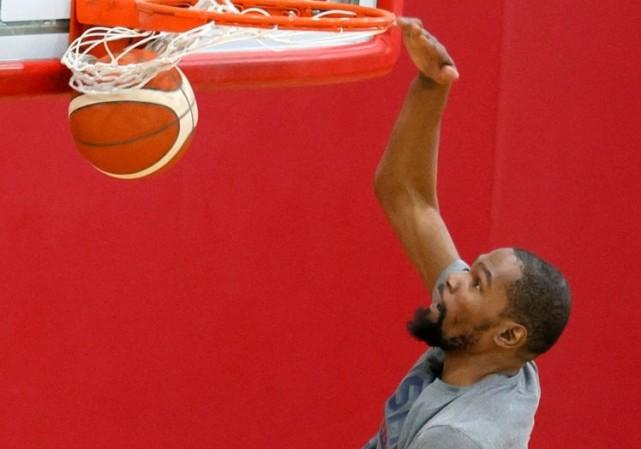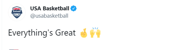24直播网讯 北京时间7月7日,美国男篮在拉斯维加斯迎来第一天正式训练,除了正在征战总决赛的霍乐迪、米德尔顿和布克,其他九位球员已经全部到位。主帅波波维奇带领他们和陪练队的成员一起进行了投篮和战术的演练,杜兰特在训练中连秀跳投暴扣,状态十分出色。美国男篮的官方社媒晒出照片后,还配文写道:“一切都很棒!”