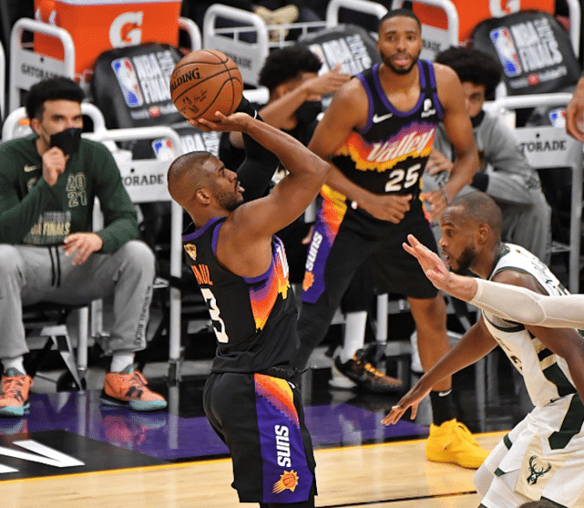 比赛之前,此前宣布大概率缺席的字母哥的状态变成了出战成疑,雄鹿队这边给出的答案是字母哥会在热身后决定是否打G1,所幸的是太阳队这边的准备还是比较充分的,当字母哥出现在出场名单中,太阳队并没有感到意外。