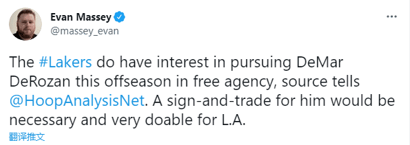 24直播网讯 此前美记者Evan Massey报道,湖人有意在自由市场上引援德罗赞,不过湖人想要得到德罗赞必须通过先签后换的方式才可行;不久前两大名嘴热议这样的交易流言,著名詹黑建议湖人该三换一引援德罗赞,遭对手嘲讽太贪婪。