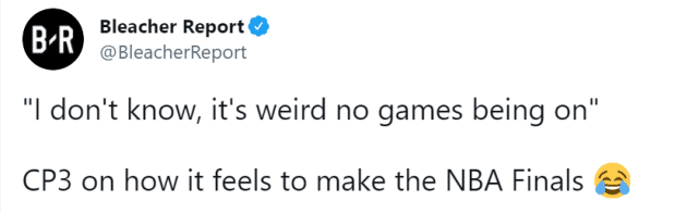 摘掉面具,或许会让布克在总决赛打出更好的表现。和布克、艾顿一样,保罗也是生涯第一次打总决赛。有记者问保罗总决赛有啥新感受,保罗的回答是:“我不知道,没有其他比赛转播有点怪。”