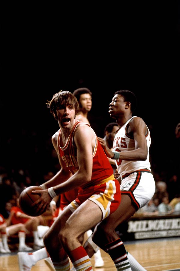 24直播网讯 仿佛是上帝刻意安排好了般,比尔·拉塞尔退役,另外一名超级中锋加入联盟,他就是“天勾”贾巴尔——哦,对不起,那时候他叫卢·阿尔辛多。效力UCLA期间,阿尔辛多就被视为洪水猛兽。除了一年级因联盟相关规定无法代表校队出战外,1967和1969年两年,他被《体育新闻》、美联社和美国篮球作者协会等多家权威机构选为年度最佳球员。1967-1969的三年间,阿尔辛多垄断了MOP奖项以及全美第一阵容中的中锋位置。在阿尔辛多的带领下,UCLA也顺理成章地连续三年将NCAA冠军奖杯收入囊中。1969年,这个大个子引发了NBA和ABA的哄抢,阿尔辛多最终选择了NBA。此前一个赛季中,雄鹿队和太阳队分别在东西部垫底,他们要通过猜硬币的方式决出谁拥有状元签。雄鹿队的运气更好一些,他们用状元签摘下了阿尔辛多。阿尔辛多根本无需适应,零启动地霸占了球场,该赛季场均砍下联盟第二的28.8分和联盟第三的14.5个篮板球,轻松成为年度最佳新秀。雄鹿队也凭此一飞冲天,以56胜26负的战绩飙升至东部第二。