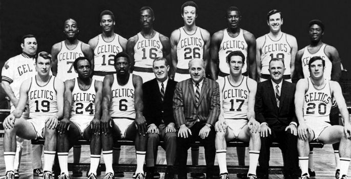 最有趣的故事终于上演了:拉塞尔VS张伯伦。不管张伯伦走到哪里,是西游旧金山,还是重回费城,还是来到洛杉矶,这对超级中锋总也免不了兵戎相见。眼见凯尔特人队逐步衰落,大幅补强的湖人队决心一雪前耻。前两战湖人队取胜,情况相当有利。但凯尔特人队已经无数次告诉大家,不管遇到什么困难,他们就是打不死的小强。回到波士顿,凯尔特人队连扳两局,期间萨姆·琼斯立下大功,他在第4战用终场绝杀帮球队89:88艰难获胜。随后两队各胜一场,又来到了惊心动魄的第七场决战。抢七局在洛杉矶的论坛球馆进行,湖人高管信心爆棚,他们认为老绿军已是强弩之末,在球馆上空悬挂了数不清的气球,准备庆祝翻身做主人。湖人队为盲目自大付出了惨痛的代价,比赛一开始就被低调的凯尔特人队猛踹屁股,第四节一度落后了17分之多。直到此时湖人才如梦方醒,掀起了如潮大反扑,但幸运女神还是占到了凯尔特人队一边,关键时刻张伯伦和主帅发生冲突,被禁止出场。论坛球馆中的那些气球没能放飞,唐·尼尔森最后时刻跳投得手,108:106,绿衫军以2分的微弱优势抢七成功,如愿卫冕。13年内11次夺冠,这是北美体育史上的神话。赛季结束后,比尔·拉塞尔和萨姆·琼斯宣布退役,绿衫王朝落幕。值得一提的是,该赛季首次设立了总决赛MVP,湖人队的杰里·韦斯特抢下史上首个总决赛MVP。总决赛MVP获得者出自落败一方,此种怪现象在NBA历史上只发生过这一次。