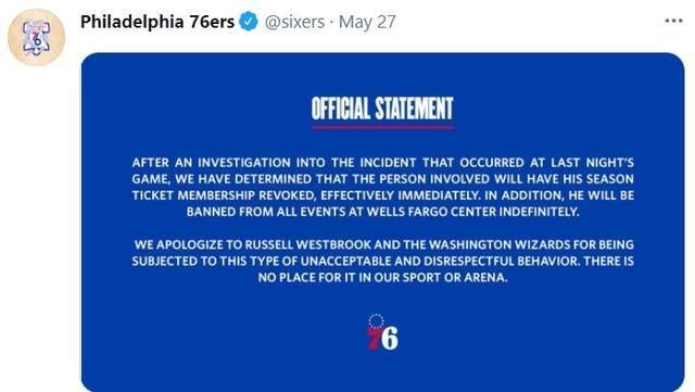 76人宣布对涉事球迷的处罚