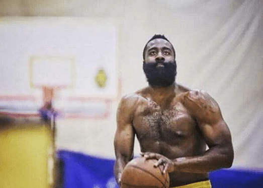 哈登紧勒球衣,露出了健壮无比的麒麟臂。上肢力量强壮可见,暴露在外的青筋向我们展示了暴力美学的实力。再配上哈登不修边幅的大胡子,说他的宋代梁山好汉鲁智深也完全说得过去。哈登一般不会卖力防守,但认真起来的哈登可是在全明星对位过字母哥的。能跟字母哥一对一进行肉搏战,哈登的身体强壮度真的比我们想象中要坚硬得多。