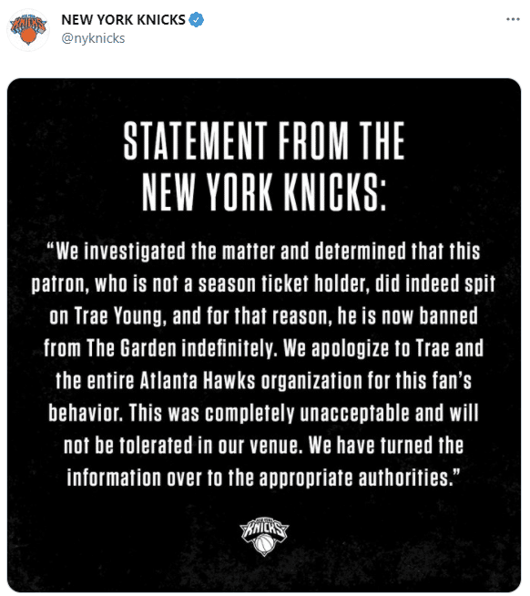 我们对威少以及奇才队遭遇如此不可接受、不尊重人的行为深表歉意,这样的行为在我们的场馆以及体育赛事中是绝不可容忍的。
