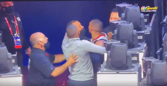赛后这件事也发酵了,冲上全美热搜,因为这种事是在伤害球员!你可以喷垃圾话,但这种行为是不被允许的,76人官方发表声明“这是完全不可接受的行为,我们绝对不能容忍。我们对拥有全国最热情的球迷、最棒的主场、最舒适的主场优势感到自豪,但这种行为绝对不能出现在我们球馆。”
