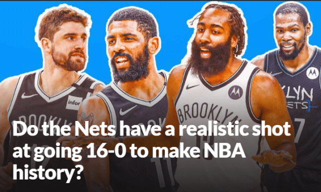 24直播网讯 篮网已经2-0领先凯尔特人,两场比赛加在一起,他们赢了对手33分。篮网记者接连晒出球队令人瞠目的数据,美媒clutchpoints提出话题:“16胜0负夺冠创造历史,篮网是否真的有机会做到?”