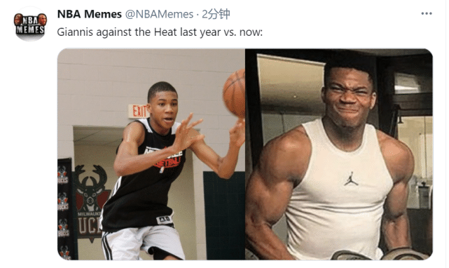 美媒也是晒出了趣图,盛赞字母哥的变化。图的左边是刚进联盟,极其瘦弱的字母哥。图的右边是如今强壮的字母哥。两张图分别代表字母哥去年和本赛季季后赛,对垒热火的表现。