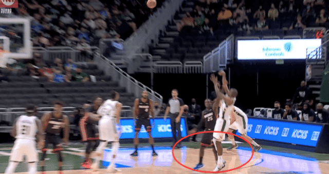 阿里扎的争议之后,热火的纳恩在防守米格尔顿干拔三分的时候又出现了垫脚的争议行为,纳恩是不是故意的,没有人知道,但是裁判以“结论导向”给了纳恩一个恶意犯规。