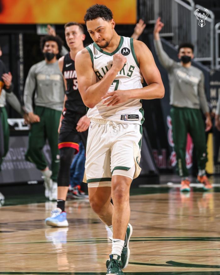 福布斯半场替补上场12分钟11投7中、三分8中5轰下19分,字母哥15分7篮板4助攻,米德尔顿得分也上双,霍勒迪助攻早早上双;神射福布斯半场投进5记三分,超热火全队(4记三分),雄鹿半场15记三分,这样投下去,雄鹿有望打破季后赛单场25记三分纪录。