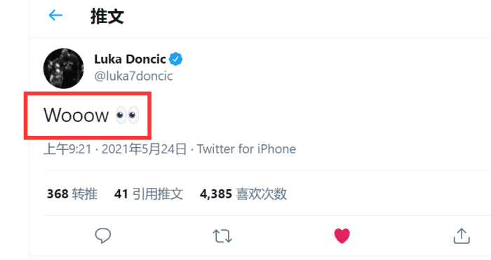 特雷杨也是老鹰队史第3位在季后赛单场砍下30分10助攻的球员,比肩马拉维奇和威尔肯斯!对于特雷杨如此神奇的首秀表现,众美媒也是纷纷发推盛赞。包括来自同届选秀的东契奇也是第一时间发推盛赞:WoooW哇哦!