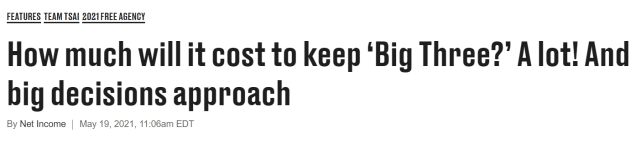 下面就是三个人如果在未来5年都以最高薪水留队的花费——