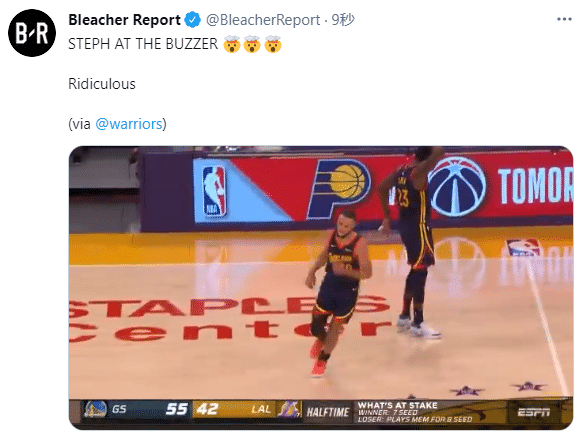 库里神级表现引热议,美媒《露天看台》发推写道:库里压哨,荒谬至极;名记则是转发库里可以和勇士续签4年2.15亿美元合同,发推写道:即使这样,这合同还是太少了。