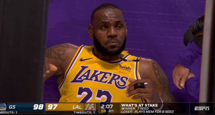 最后4分43秒,詹姆斯重新上场,施罗德突破上篮,普尔投进空位三分,库里点飞施罗德,后者抛投打板得分,湖人再次喊暂停,沃帅换下施罗德,马修斯上场。