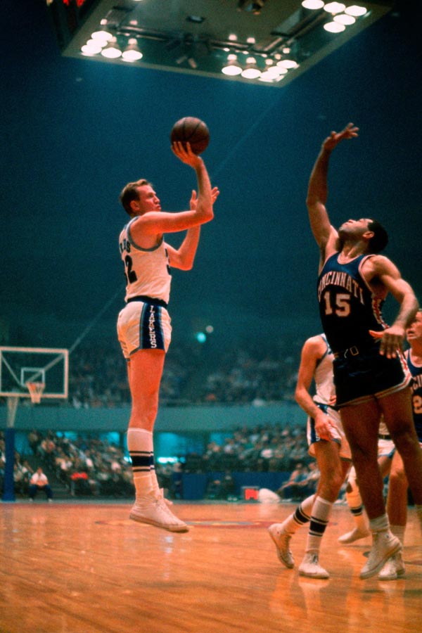 故事还得从1957-1958赛季说起。对于湖人队而言,这是堪比梦魇的一个赛季。连年沉沦下,麦肯成了救火主教练,可他的执教水平显然没有打球好,在任期间,湖人队的战绩只有惨不忍睹的9胜30负,最终黯然下课。万般无奈,湖人队高层只得说服约翰•昆德拉重新出山。但事已至此,积重难返,常规赛结束,湖人队只收获19胜53负,这是湖人历史上的最差战绩。当然,以现在的眼光看,这个丢人纪录在湖人队史上扮演了极其重要的角色,因为他们因此收获了一个状元签,并在1958年选秀大会上摘下了伟大的埃尔金•贝勒。贝勒身高只有1.96米,却司职小前锋,早在西雅图大学打球时,他就被认为是不世出的篮球天才。纯熟的控运技术,出众的拼抢篮板意识,强烈的得分欲望……最为重要的是,这个身高偏矮的小前锋,似乎有不受地心引力掣肘的魔力,惊人的弹跳力使得他成为历史上第一个可以在篮筐之上打球的“飞人鼻祖”。当后人瞪圆了双眼欣赏康尼•霍金斯、朱利叶斯•欧文和迈克尔•乔丹等飞人上演空中滑翔时,总会隐约想起贝勒,是他为“飞人系”树立了标杆。