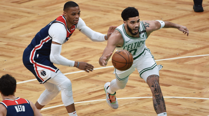 24直播网讯 北京时间5月19日,附加赛首日,凯尔特人依靠着塔图姆斩获附加赛历史上第一个50+的得分,在主场击败奇才,成功拿下常规赛第七名,季后赛首轮对手是篮网。奇才将会和击败黄蜂的步行者展开对决,争夺常规赛第八名。这场比赛首节凯尔特人占据优势取得领先,次节奇才逆袭反超比分,第三节凯尔特人在塔图姆爆发的情况下打出一波17-2开局强势领先,他单节轰下23分。末节鏖战,凯尔特人稳住局面,成功拿下胜利,锁定常规赛第七名。