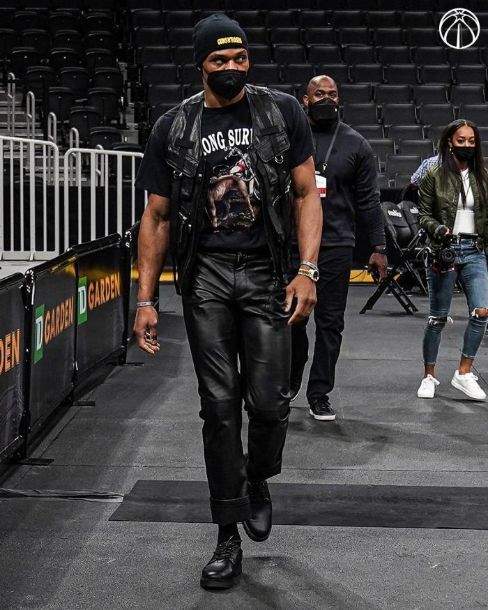 24直播网讯 北京时间5月19日,NBA附加赛开打的日子到了,奇才对阵凯尔特人赛前,奇才官方晒出众球员的入场照,威少霸气入场照引热议,身穿一套全黑的服装出镜,表情和眼神中透露着杀气,很有大佬范。