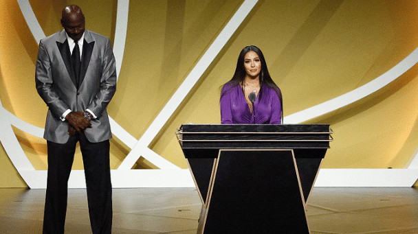 24直播网讯 北京时间5月16日,科比正式进入名人堂,在演讲的环节中,科比遗孀瓦妮莎最后一个登台,乔丹作为引荐人,全程站在身旁。同时瓦妮莎也透露当自己希望乔丹担任科比名人堂引荐人的时候,篮球飞人没有任何的犹豫就答应了。演讲环节中瓦妮莎代表科比感谢了湖人、球迷、队友和家庭等。最后瓦妮莎深情告白科比:“我永远爱你,科比·比恩·布莱恩特”随后全场高喊科比的名字,这一幕非常感人。