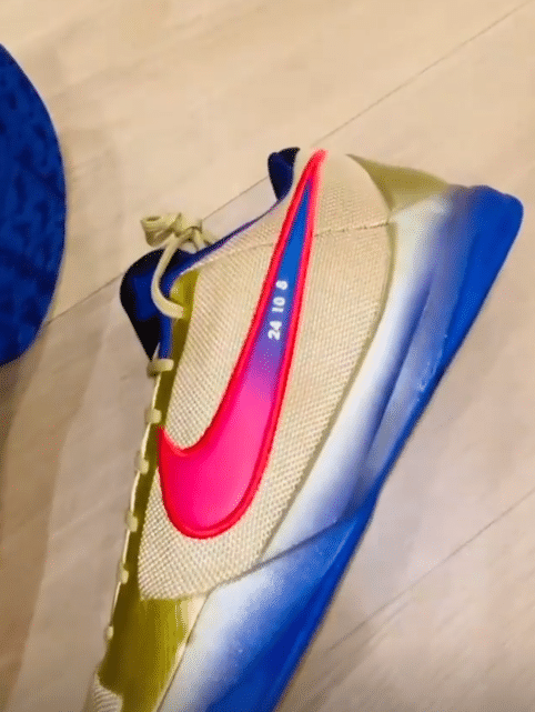 不久前,詹姆斯更新社交媒体,晒出一双未发行的科比5名人堂金色战靴,球鞋logo处印着24、10和8三个数字,8和24代表科比在湖人穿过的球衣号码,10则是他在美国队穿过的号码。