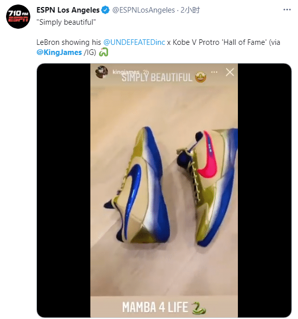 詹姆斯还配文写道:简单而又漂亮,曼巴一生一世!