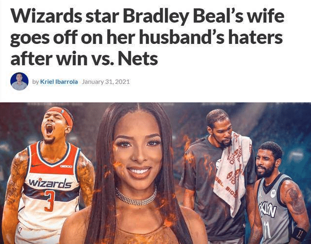 这样的言论一出,引发不小的争议,其实作为勇士球员的贝兹莫尔可以吹捧库里的表现,但不应该用这样的方式来嘲讽另一位竞争者比尔,有点捧高踩低的意思,所以九连败不少的勇士球迷也觉得自家球员真的是言论不当。这一声音很快就传到了比尔妻子的耳中,爱人选择沉默,而作为“队内大姐大”的比尔妻子可坐不住了,她在社交媒体上直接抨击贝兹莫尔。