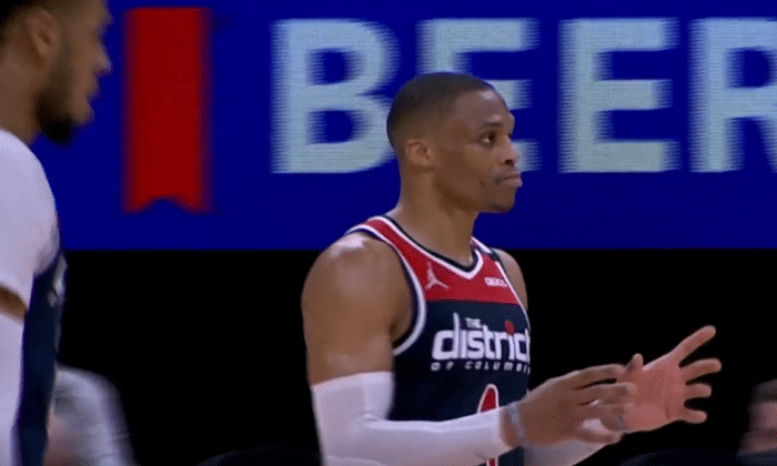 24直播网讯 今天早些时候奇才124:125憾负老鹰队,比尔场边观战,威少一人带队险些完成19分的大逆转,全场轰下28分13板31助攻的豪华数据!