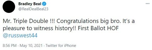 比尔“三双先生!!!恭喜大兄弟。很高兴能够见证历史!!绝对的名人堂球员。”