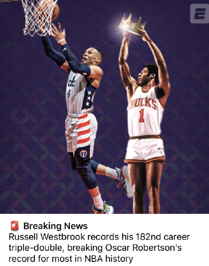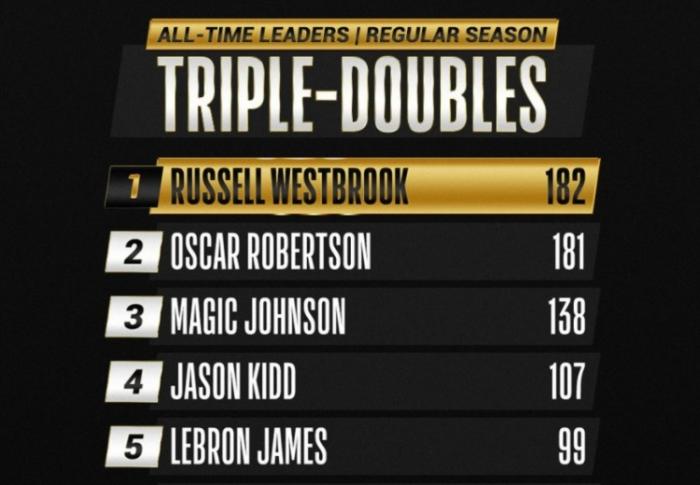 这一战之后威少正式超越大O,拿到生涯第182次三双独享历史三双王,而且以威少这个状态,可能之后会把这个纪录提升很多!这一神迹引起了全网热议,全美疯狂刷推盛赞,国内的评论员王猛也是晒图+附文恭喜威少,可以说我们见证了这一历史性的时刻,对于任何球迷来说都是幸福的!