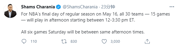 如此赛程真是疯狂至极,收官战最后一天30支球队总共15场比赛,全都在凌晨0点到3点30分开打,尤其是湖人篮网等豪强都在这个时间段打比赛,对于无数中国球迷来说,想看直播只能熬夜,这可能会涉及到某些球队的最终排名。